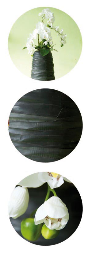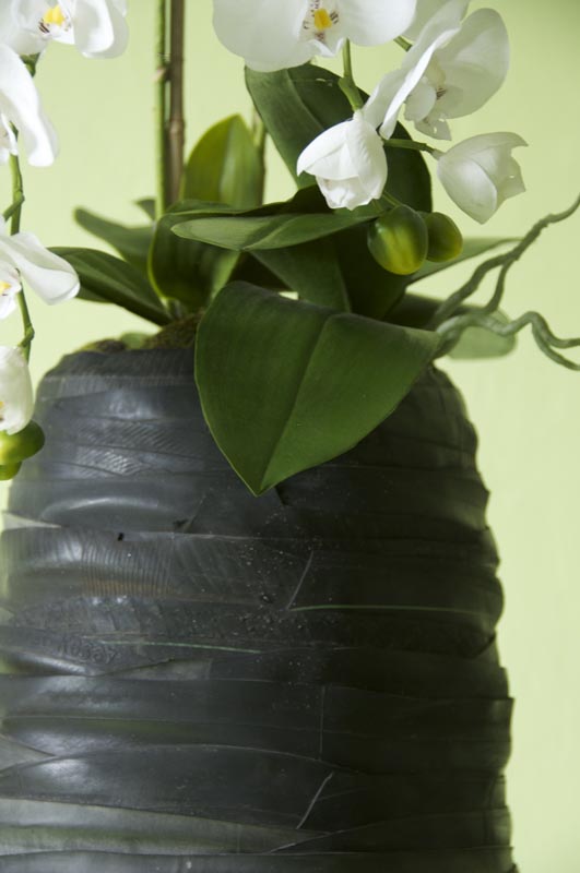 Gefäß: Hohes Gefäß mit Fahrradschläuchen umwickelt.