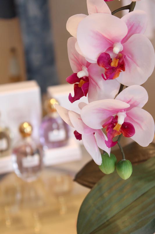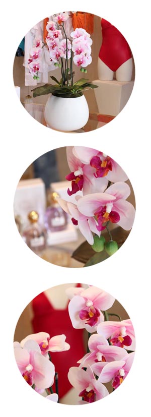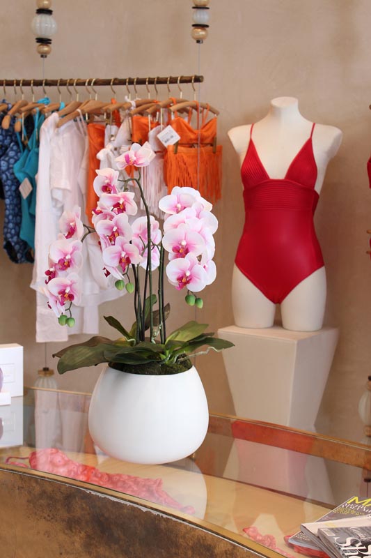Gefäß: Weiße elegante Keramik mit handmade Wölbungen, 3 Stiele weiß-pinker